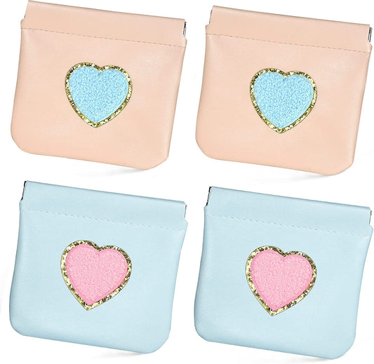 BYXEPA Coin Purse 4 Pack Change Purses Small PU Leather Cosmetic Bag Pocket Heart Makeup Organizer Cute Portable Waterproof Jewelry Travel Case for Girls Kids (2 Pink + 2 Blue)