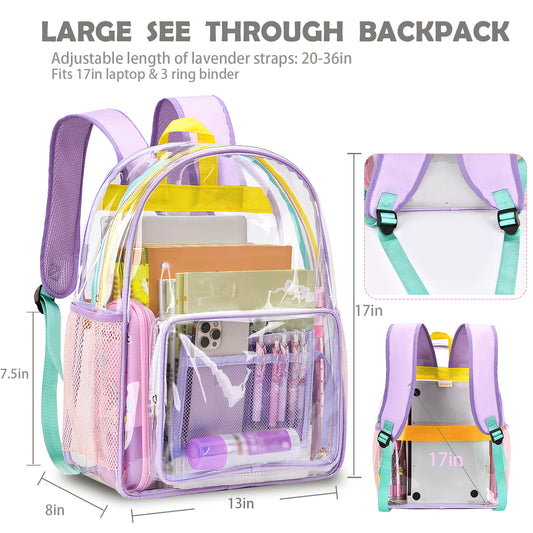 BYXEPA Clear Backpack Heavy Duty, 17in TPU Transparent Backpacks Large Capacity, Clear Book Bag for Teen Girls Women Kid to Elementary Middle School College Travel Security - Lavender