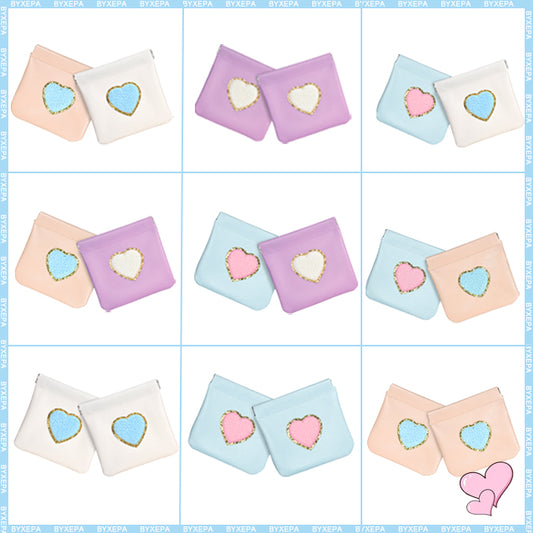 BYXEPA Coin Purse 2 Pack Change Purses Small PU Leather Cosmetic Bag Pocket Heart Makeup Organizer Cute Portable Waterproof Jewelry Travel Case for Girls Kids