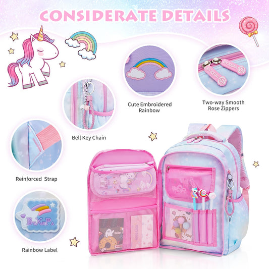 BYXEPA School Backpacks with Compartments for Elementary Girls Kids, Blue