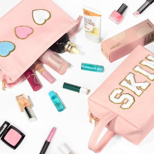 BYXEPA 2 Pack Preppy Makeup Bag PU Leather Heart SKIN Roomy Aesthetic Make Up Bag Travel Waterproof Pouch Gift Cute Accessories