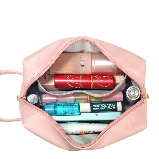 BYXEPA Preppy Heart Makeup Bag with Pocket Cosmetic Bag Waterproof Pink Make up Travel Accessories Case Kids Portable Storage for Teen Girls Gift