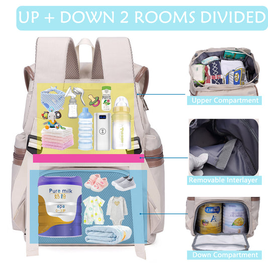Diaper Bag Backpack with Velcro Interlayer USB Changing Mat Stroller Straps - Baby Registry Search Newborn Shower Gifts Waterproof Baby Nappy Bag Stylish Travel Casual Back Pack Mom 12L*7W*17H Latte