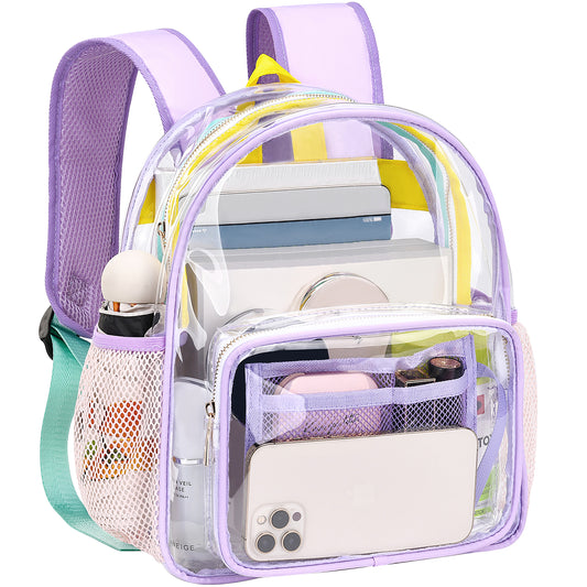 Clear Mini Backpack Stadium Approved TPU Heavy Duty 12*12*6 Waterproof Transparent Backpacks Book Bag for Teens Girls Women Concerts, Sporting Event, Beach, Travel, Work, School, Security- Lavender