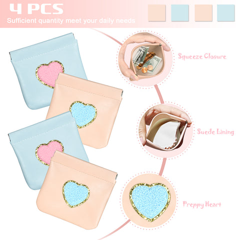 đăMINI PREPPY PATCH BAGăThe Coin Purses Size is 4.3in X4.7in, There is a chenille Heart patches with a shiny frame, it's Cute, Compact and Lightweight, You can easily carry this change pouch with you everywhere you go, it easily fits inside your pocket, handbag, backpack, and more for easy access when you need it.